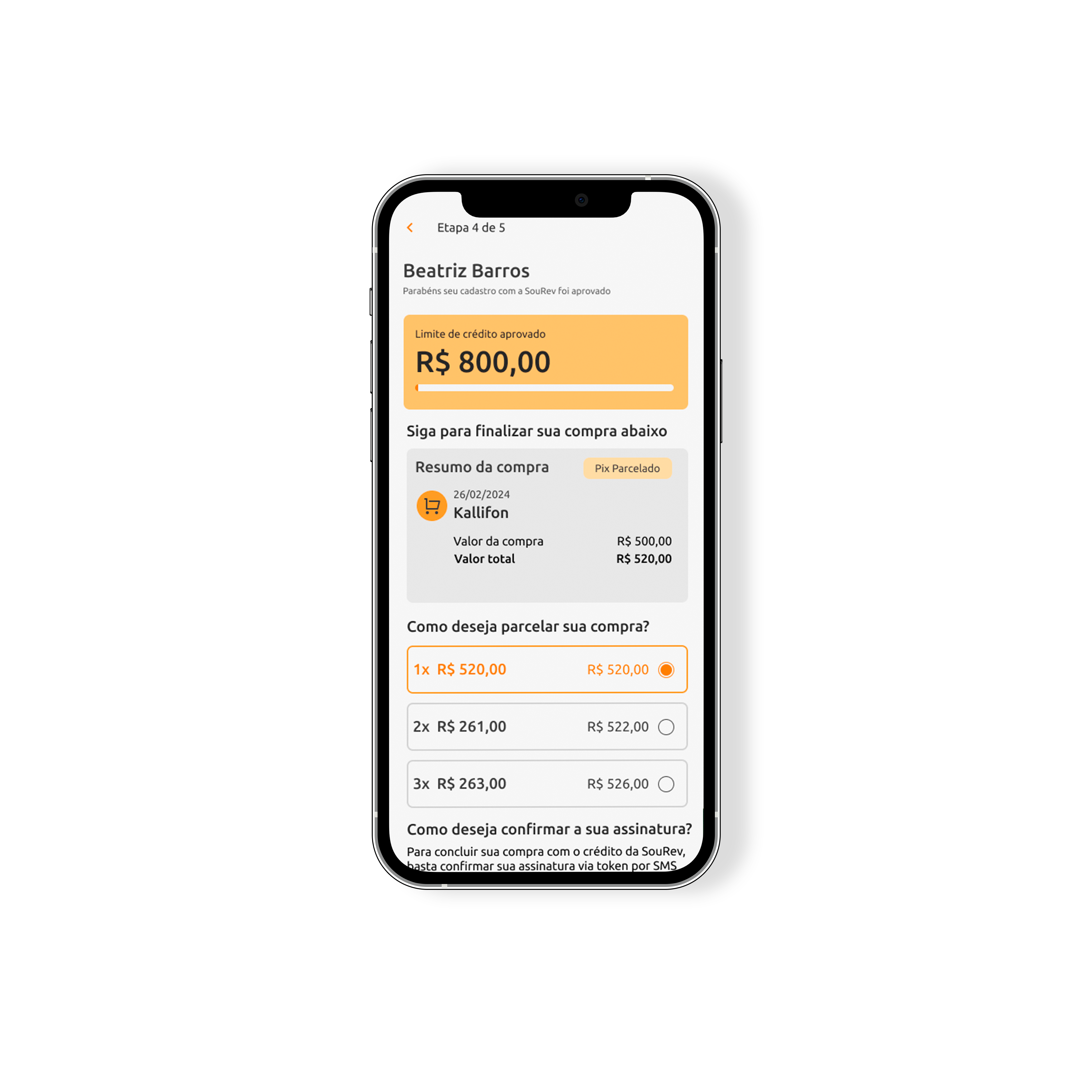 Garantir clareza sobre parcelamentos, aprovações e limites disponíveis;/li>
