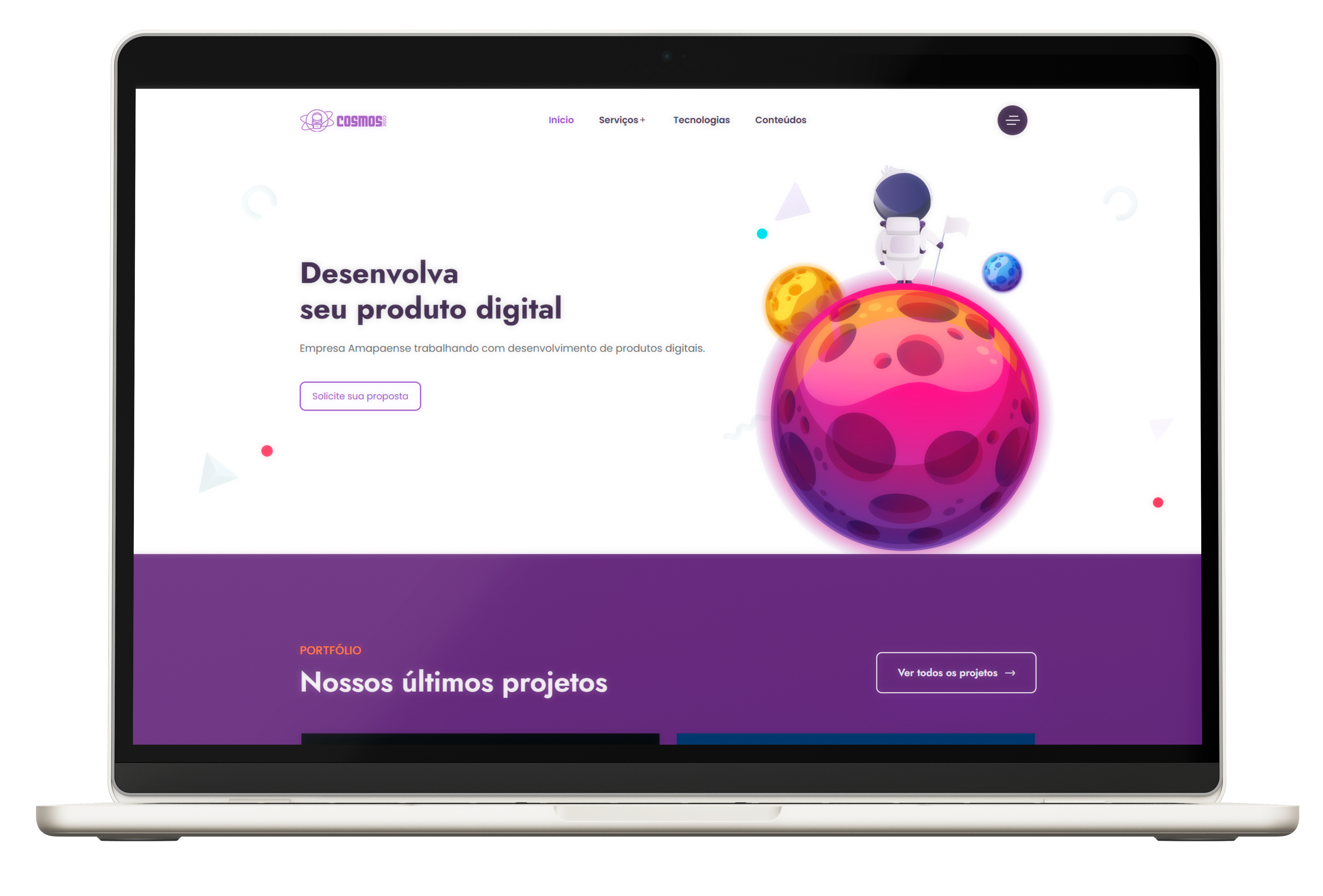 Criação do site institucional da Cosmos Code, empresa especializada em soluções digitais que unem estratégia, design e tecnologia. O site foi desenvolvido com o objetivo de apresentar a proposta da marca de forma clara e direta, para reforçar sua autoridade e apresentar alguns de seus projetos.