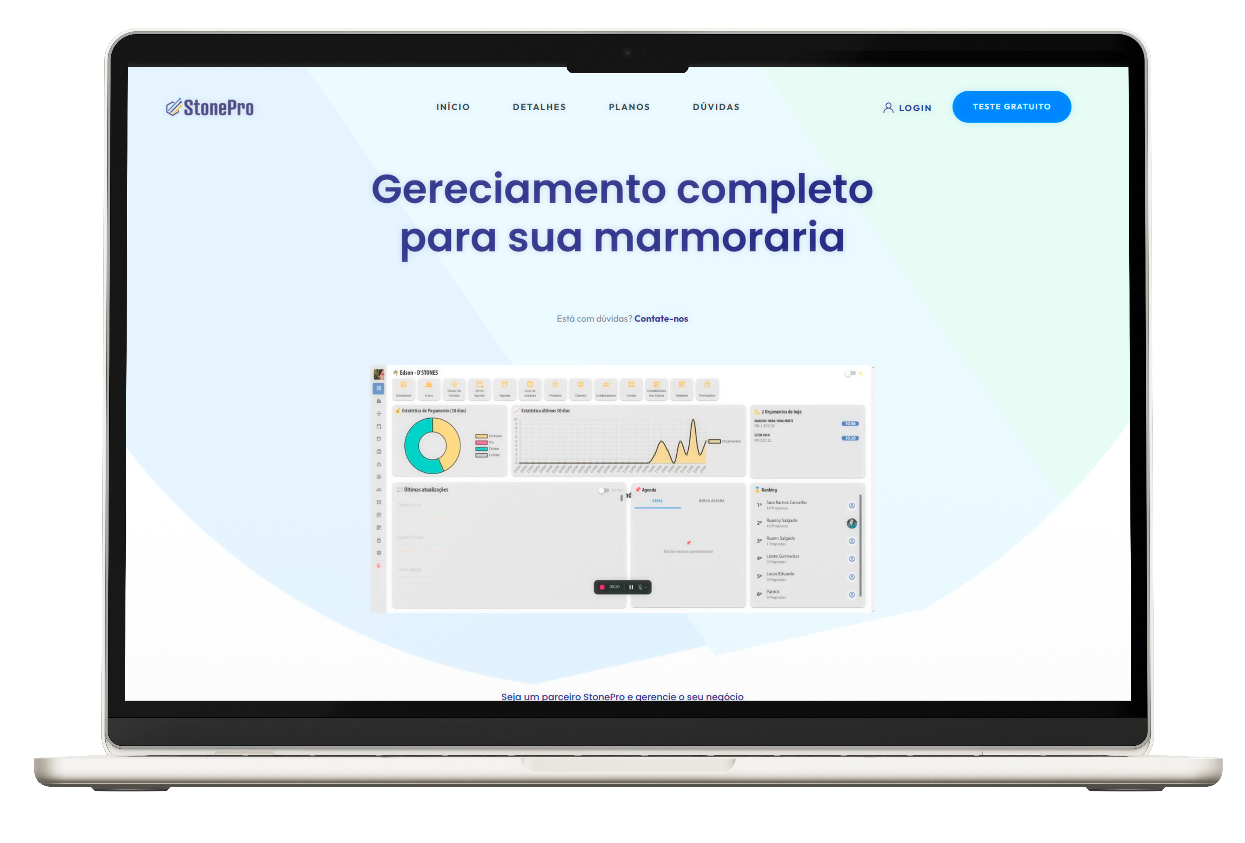 Criação do site institucional da StonePro, um software voltado para gestão de marmorarias que oferece recursos como orçamentos, controle de peças e automação de processos. O site foi desenvolvido com foco em apresentar as funcionalidades da plataforma de forma clara e acessível, reforçando a autoridade da marca no setor.